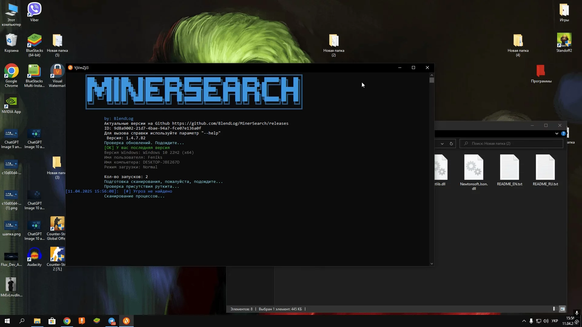 Minersearch - это незаменимая утилита для обезвреживания майнинг вирусов на вашем компьютер или ноутбуке. Майнинг уже давным-давно усложняет жизнедеятельность всем геймером, так и просто обыкновенным пользователям. И многие ничего не могут с этим сделать, так как на 2025 год майнеры обучились весьма хорошо утаивать самих себя. И добывать за счёт ресурсов вашего компьютера, в особенности видеокарты. Bitcoin и другие криптовалюты. И вы даже не будете этого замечать. Minersearch - Это программа, которая поможет вам просканировать весь Ваш компьютер на наличие каких-либо майнинг вирусов. И удалить. Без возможности обратного внедрения. Для удобства программа не требует установки, имеет на борту русский язык и очень проста в использовании.